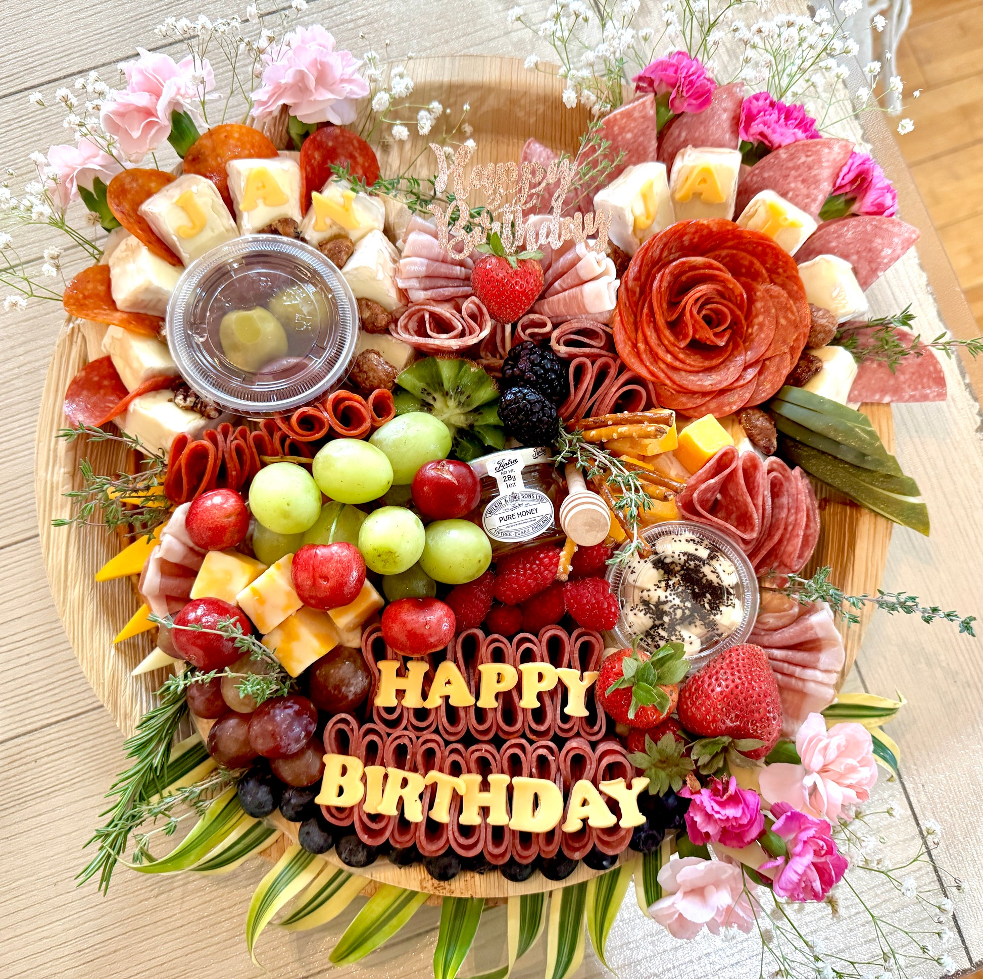 · Complimentary cheese lettering up to 2 long words OR up to 3 short words (≤5 letters each). Examples: “Happy Birthday” “Aloha 2025” “Welcome Home” “Smith Ohana 2025”