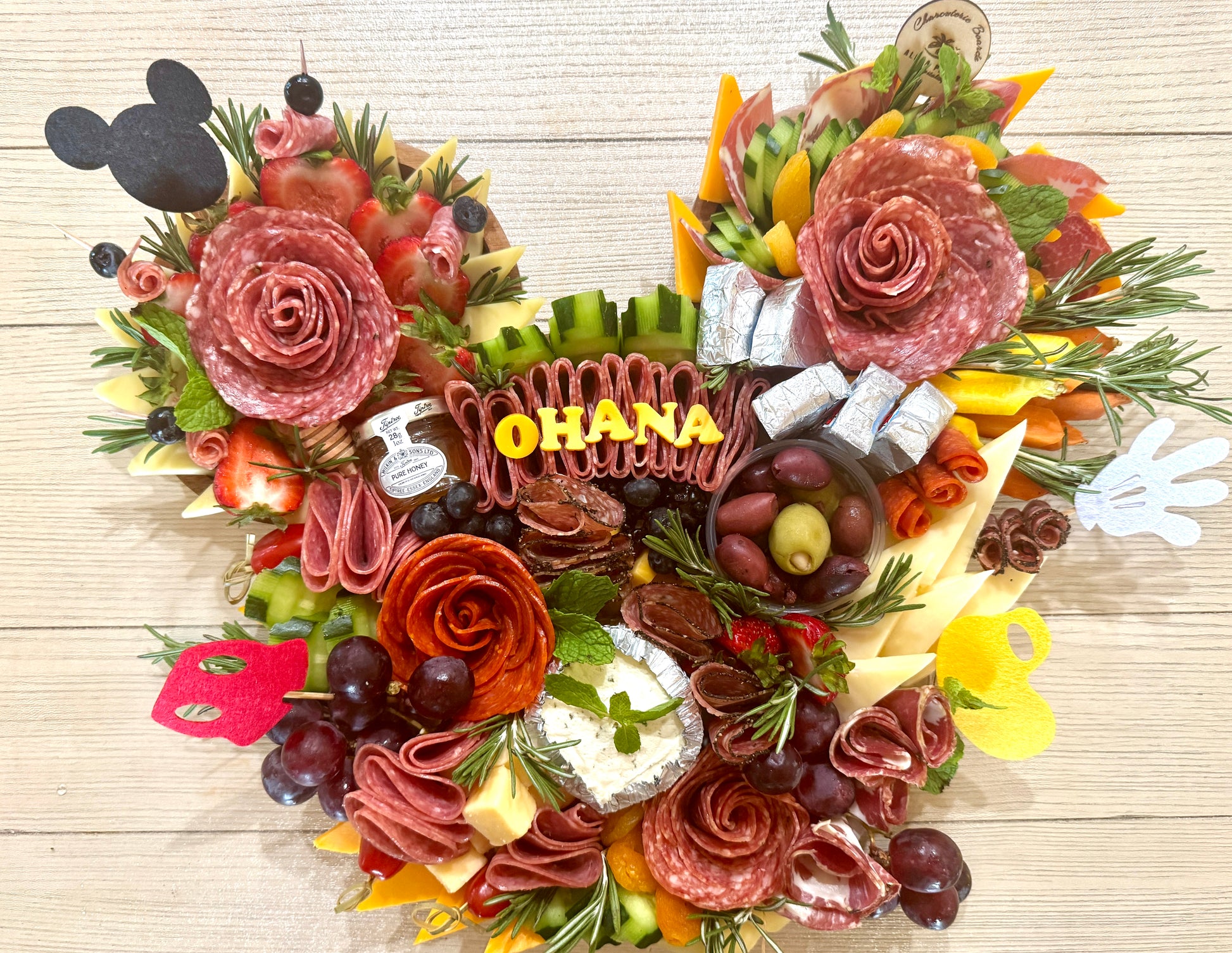 · Mickey-shaped charcuterie board designed to serve 5-7 as appetizers